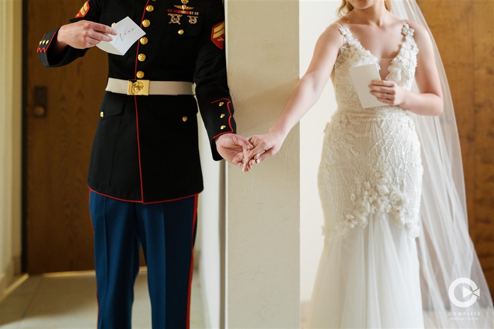 Dressed for a Fairytale: Erica’s Bridal Gown and Austin’s Military Uniform